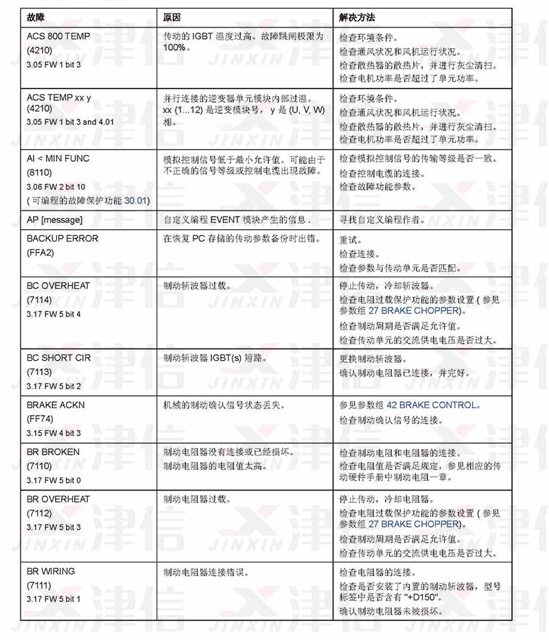 ABB ACS800變頻器故障代碼和維修措施