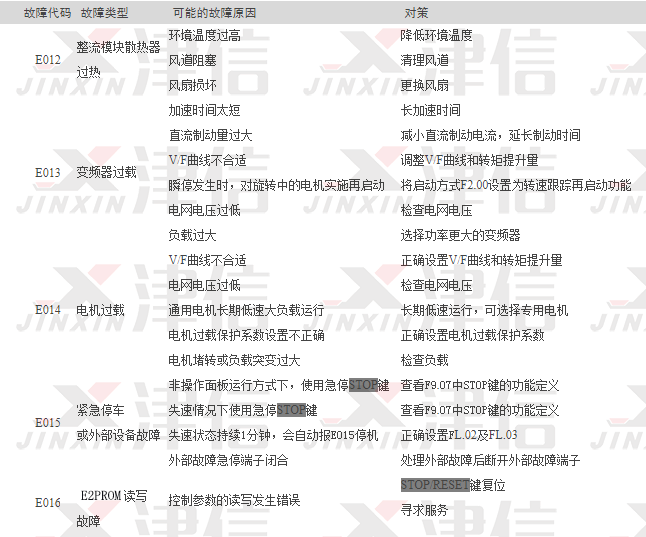 ?艾默生變頻器使用過程中,出現故障時面板會顯示故障代碼,方便維修維護人員了解問題原因,并采取相應措施,常見的故障代碼如下: