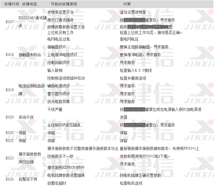 1,故障代碼E001,E002,E003,E004,E005,E006