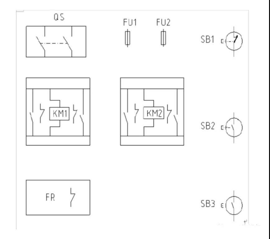 拿到原理圖先看上面有哪些器件,設計一下這些器件位置如何安放,根據(jù)柜(盤)空間繪制平面布置圖,如下面由原理圖(圖一)到實物布置圖(圖二)